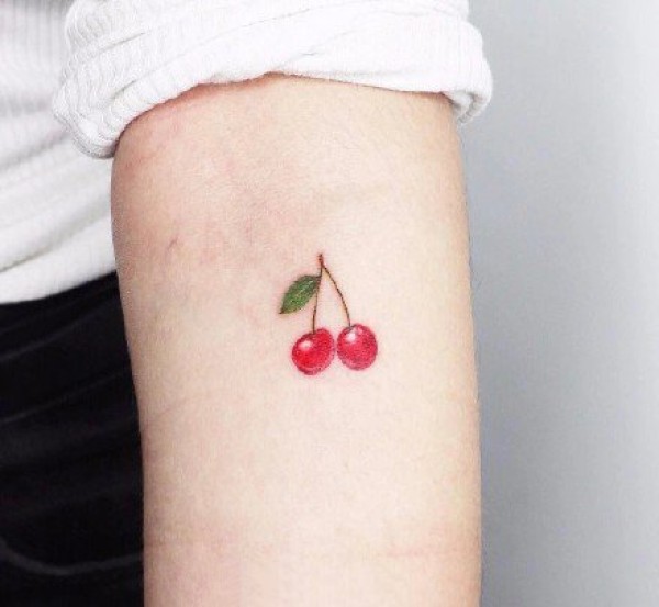 女性身上看起来是如此可口的水果樱桃纹身图案