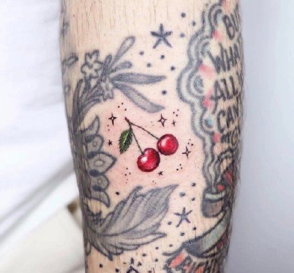 女性身上看起来是如此可口的水果樱桃纹身图案