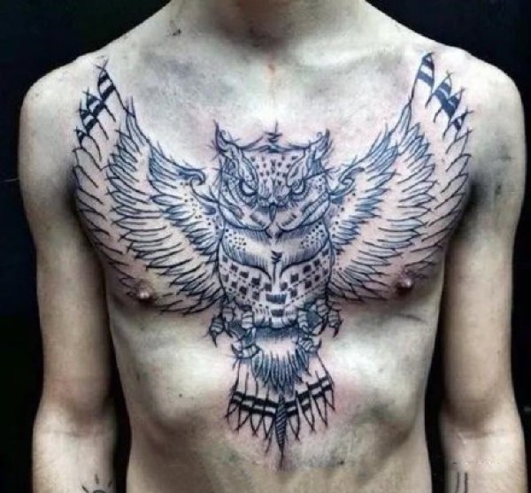 酷酷大面积花胸等猫头鹰纹身作品图案