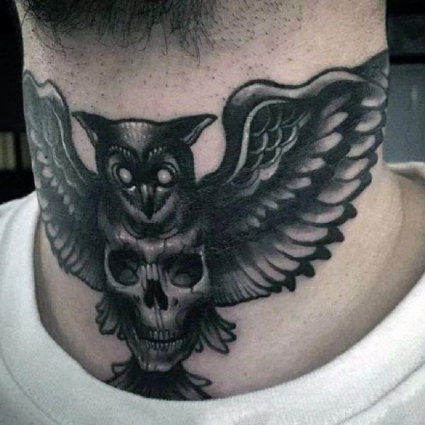 酷酷大面积花胸等猫头鹰纹身作品图案
