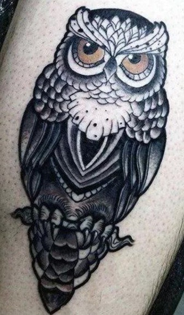 酷酷大面积花胸等猫头鹰纹身作品图案