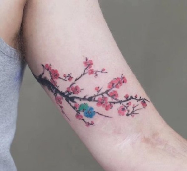 手臂上的梅花和浪花纹身