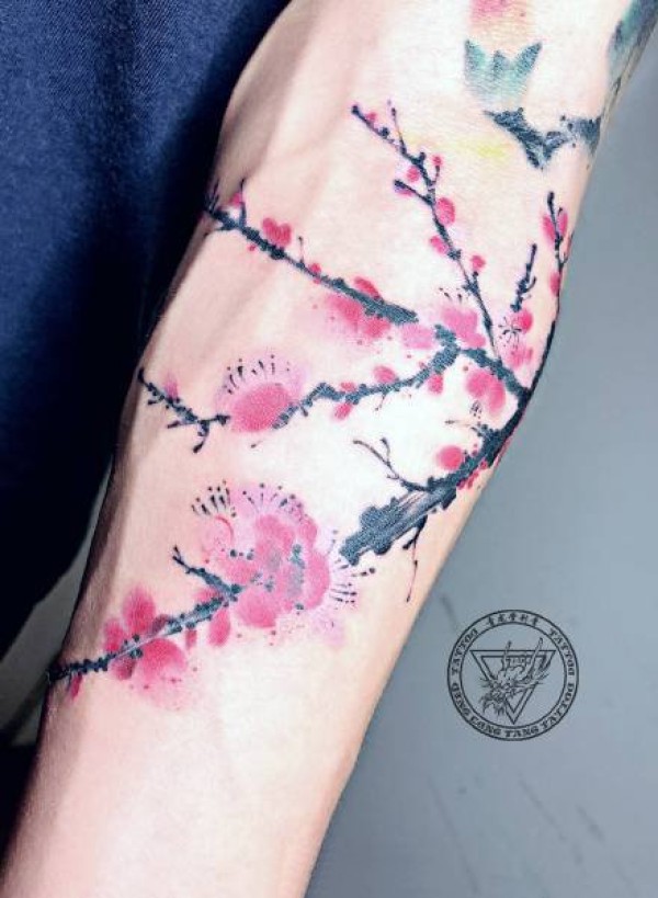 手臂上的梅花和浪花纹身