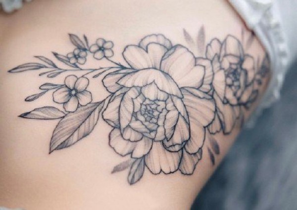 大腿素花纹身 女士大腿处性感的素花纹身图片