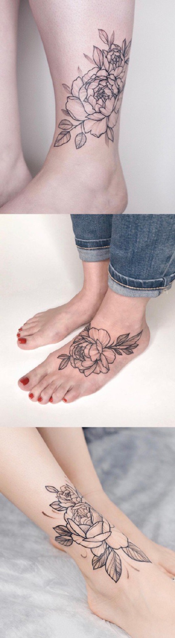 大臂素花纹身 9款女士的大臂黑灰花朵植物纹身图案