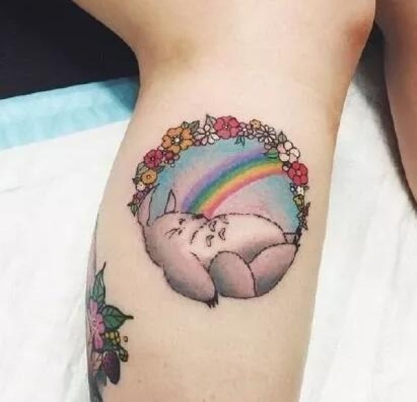 龙猫纹身图案 男生手臂上卡通龙猫纹身图片