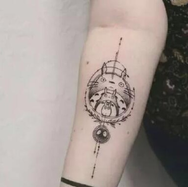 龙猫纹身图案 男生手臂上卡通龙猫纹身图片
