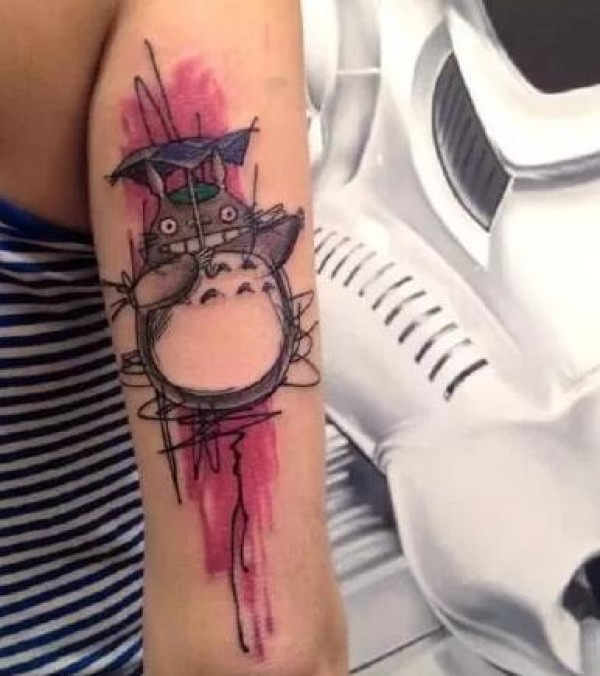 龙猫纹身图案 男生手臂上卡通龙猫纹身图片