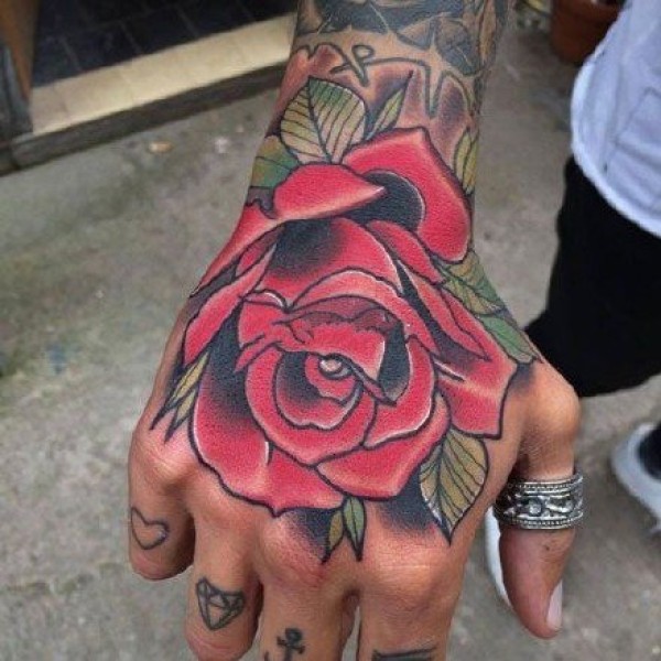 40款满手背玫瑰花纹身图案