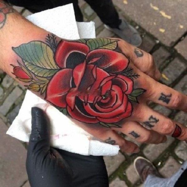 40款满手背玫瑰花纹身图案