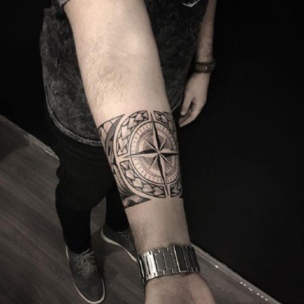 小臂手腕处很有民族风情的手环臂环纹身图案
