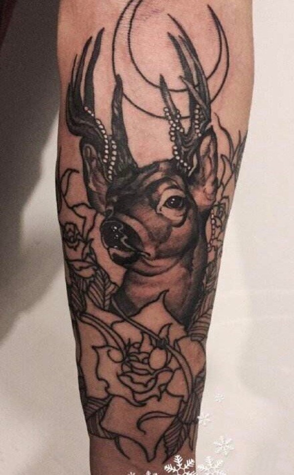 麋鹿纹身作品_14张动物麋鹿纹身图案图片作品欣赏