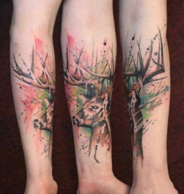 麋鹿纹身作品_14张动物麋鹿纹身图案图片作品欣赏