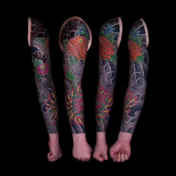 传统风格的一组男性花臂和花腿纹身图案欣赏