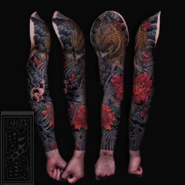 传统风格的一组男性花臂和花腿纹身图案欣赏