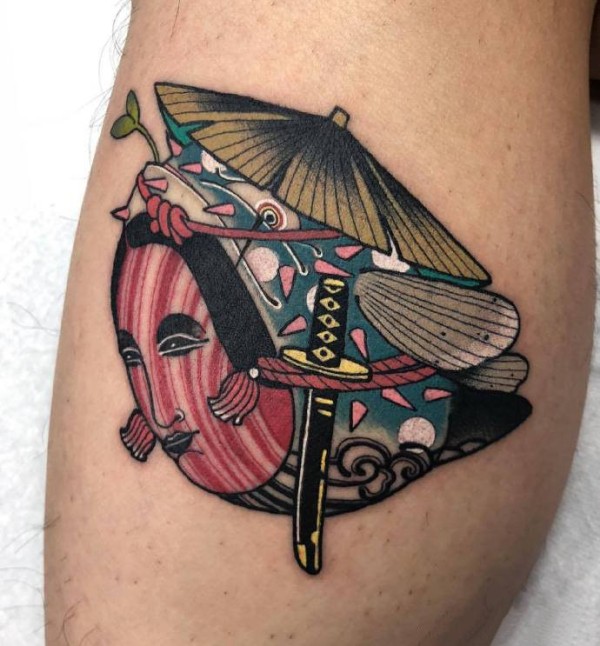 传统花腿纹身--18张传统风格的大花腿纹身图案作品