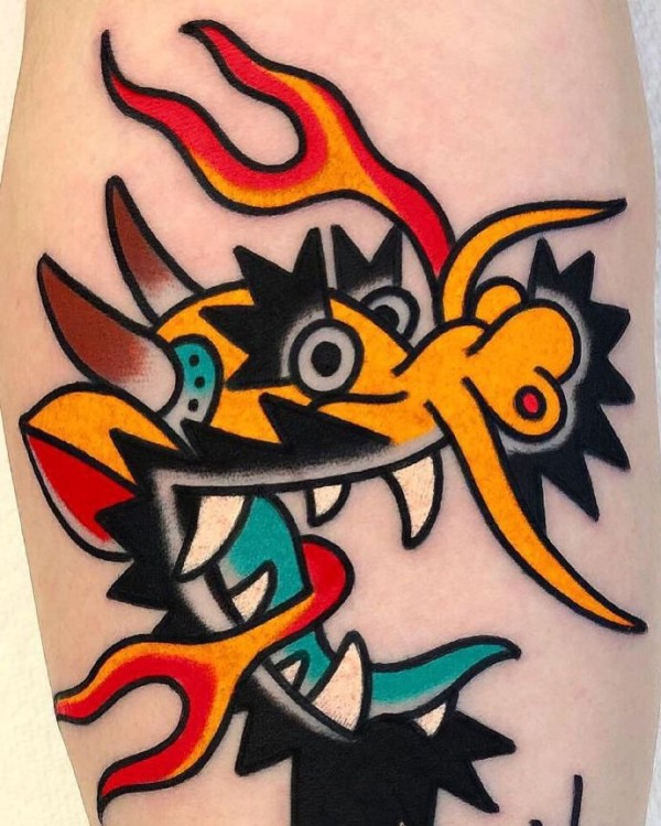 龙纹身手稿_一组老传统黑灰龙手稿纹身图案