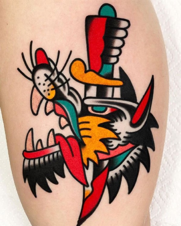 手臂美式大猫头像纹身非常可爱