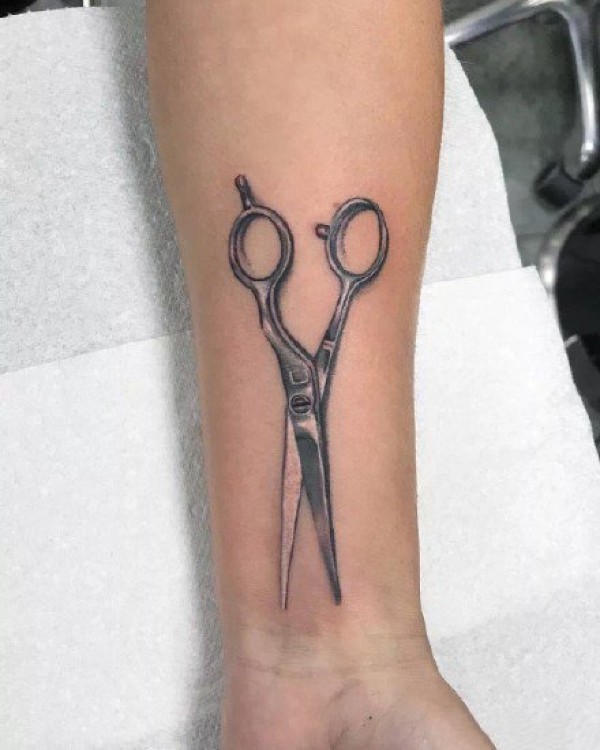 理发剪刀纹身 男生手臂上黑色的剪刀纹身图片