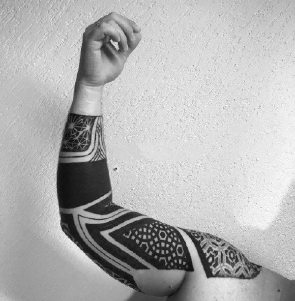几何大黑臂 花式几何规则图形的大黑臂纹身作品