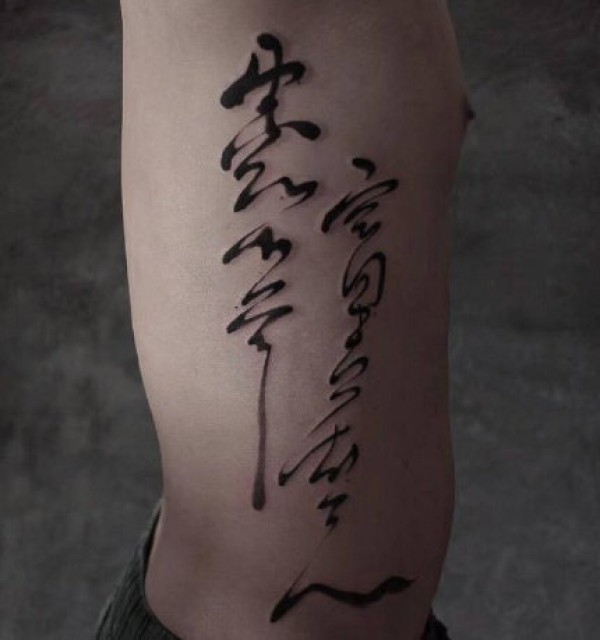 书法纹身 侧腰等部位的中文书法汉字纹身图案