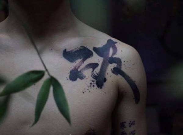 水墨书法风格的纹身-每个字背后都蕴含着深刻的含义