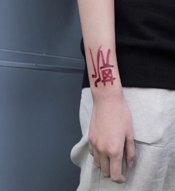 水墨书法风格的纹身-每个字背后都蕴含着深刻的含义