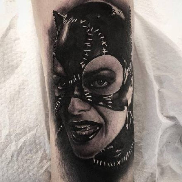 一套欧美动画片角色写实黑灰手臂纹身作品