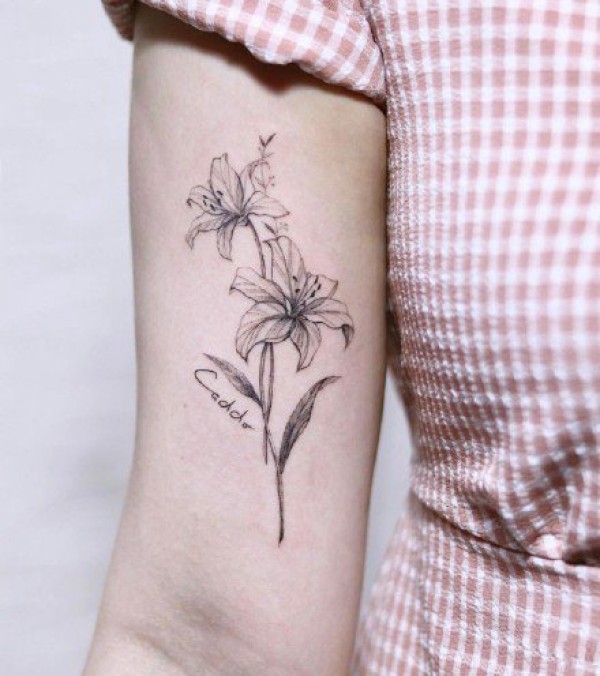 女孩子喜欢的一组黑灰素雅小花纹身图片