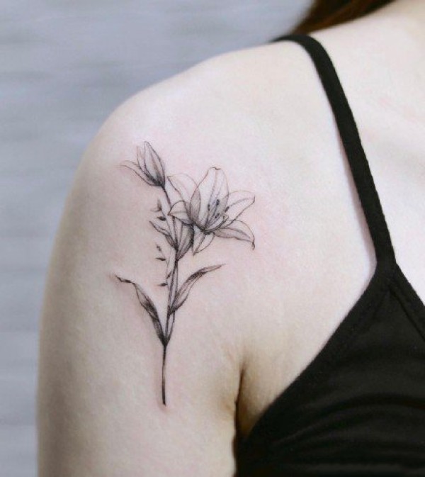 女孩子喜欢的一组黑灰素雅小花纹身图片