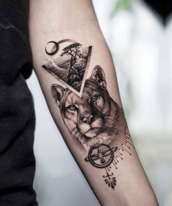 心脏纹身图案 女生手臂上黑灰纹身心脏纹身图案