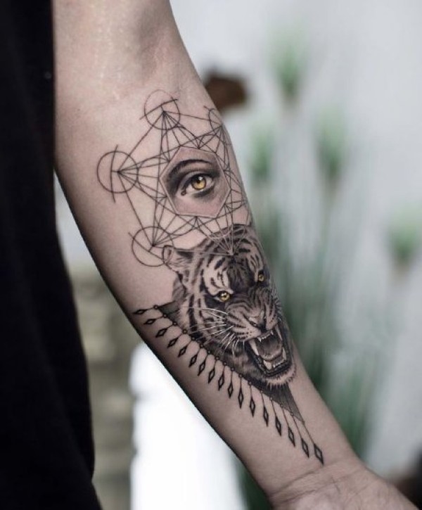 心脏纹身图案 女生手臂上黑灰纹身心脏纹身图案
