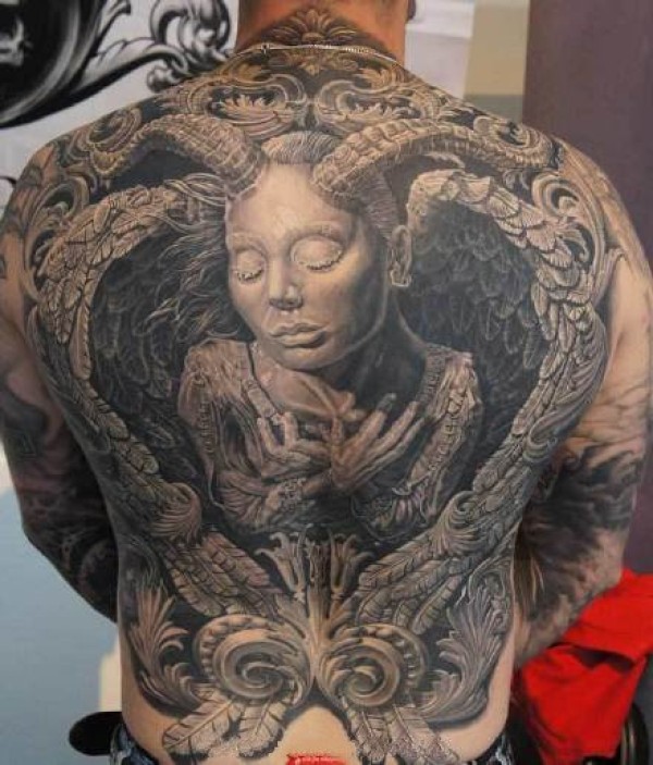 欧美黑白风格的写实9组大满背纹身作品