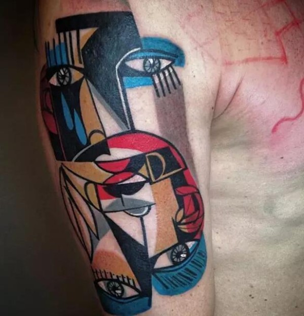 欧美黑灰色3d立体写实包大臂纹身作品9张