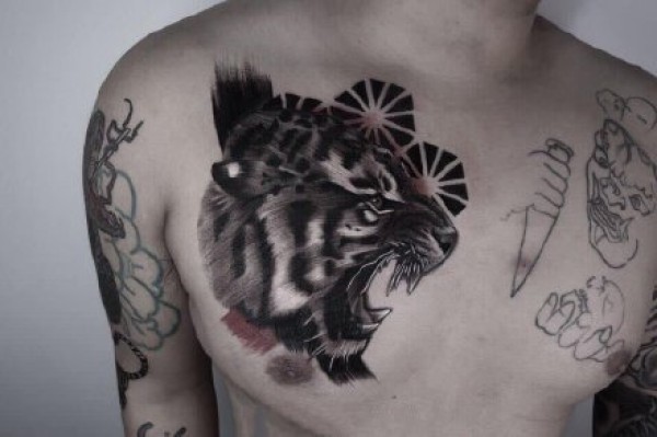 男性们都喜欢这样帅气的凶猛的老虎纹身图案
