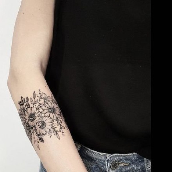 缠绕在小手臂手腕上的花藤纹身图案作品