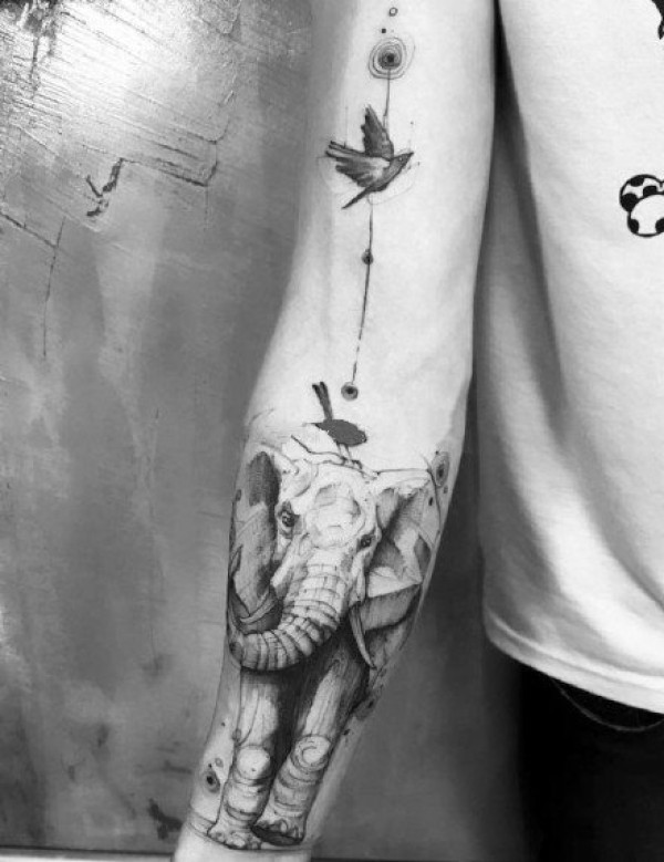 小臂写实大象黑灰纹身图案