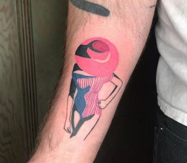 复古卡通红唇美女手臂纹身_卡通纹身图案大全_纹身图吧