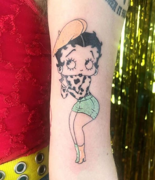 复古卡通红唇美女手臂纹身_卡通纹身图案大全_纹身图吧
