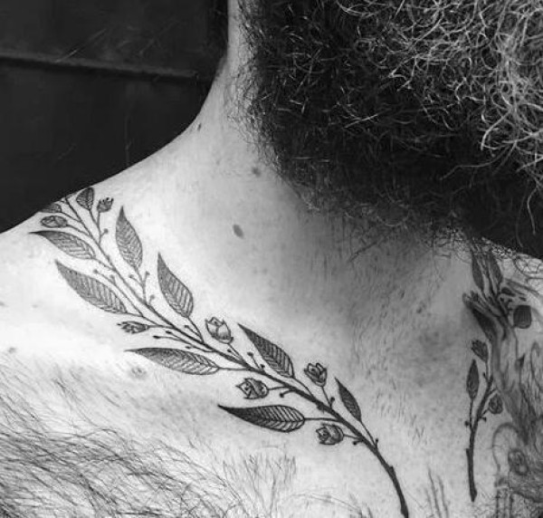 锁骨简约纹身_9张锁骨上的小清新简约黑灰纹身作品图案