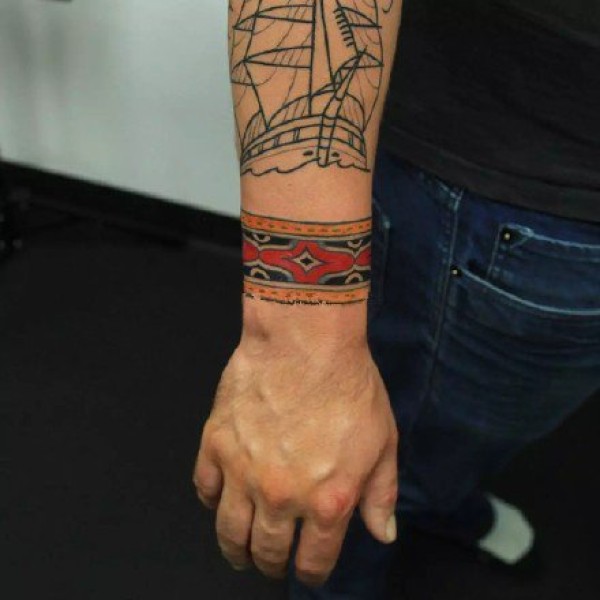 小臂手腕处很有民族风情的手环臂环纹身图案