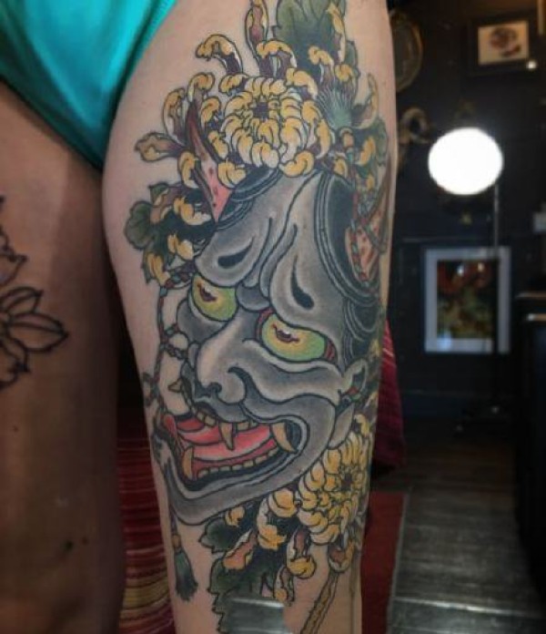 传统花腿纹身--18张传统风格的大花腿纹身图案作品