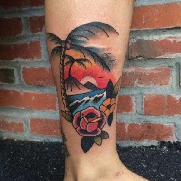 school的9款海边椰树沙滩风景纹身图片