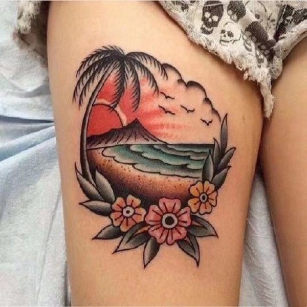 棕榈树纹身图案 根深叶茂的棕榈树纹身图案