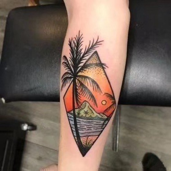 棕榈树纹身图案 绿意盎然的棕榈树纹身图案