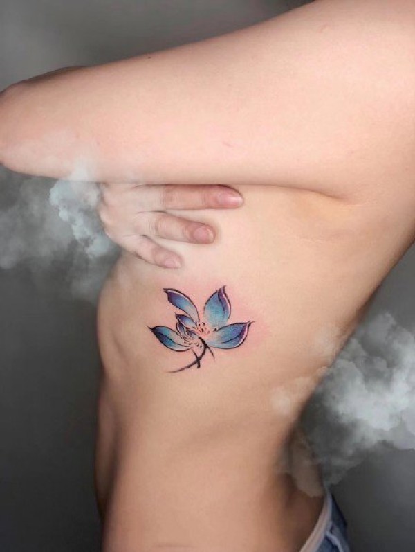 腰部蓝莲花黑色图腾纹身