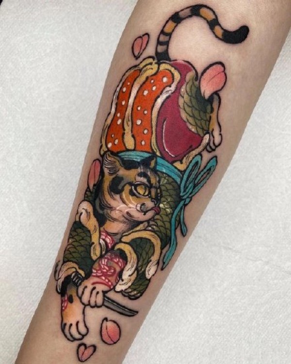 日本彩色新传统传奇人物纹身动物图案纹身 by Yushi Tattoo