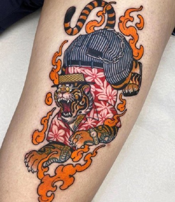 新传统风格的9张花臂花腿等纹身图片