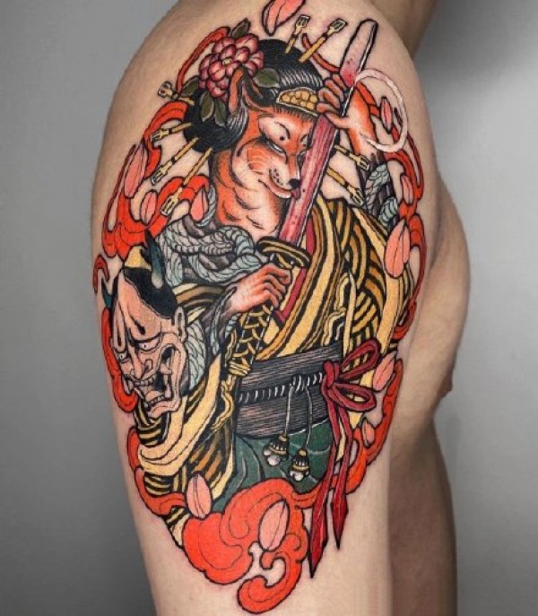 日本彩色新传统传奇人物纹身动物图案纹身 by Yushi Tattoo