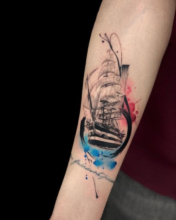 一组大胆的水彩泼墨彩绘技巧渐变纹身图案大全